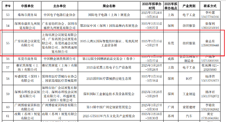 2025年2月7日,广东省商务厅关于印发2025年“粤贸全国”活动目录的通知,2025大湾区国际智能纺织制衣、鞋机鞋材工业设备展入选2025年“粤贸全国”活动目录。