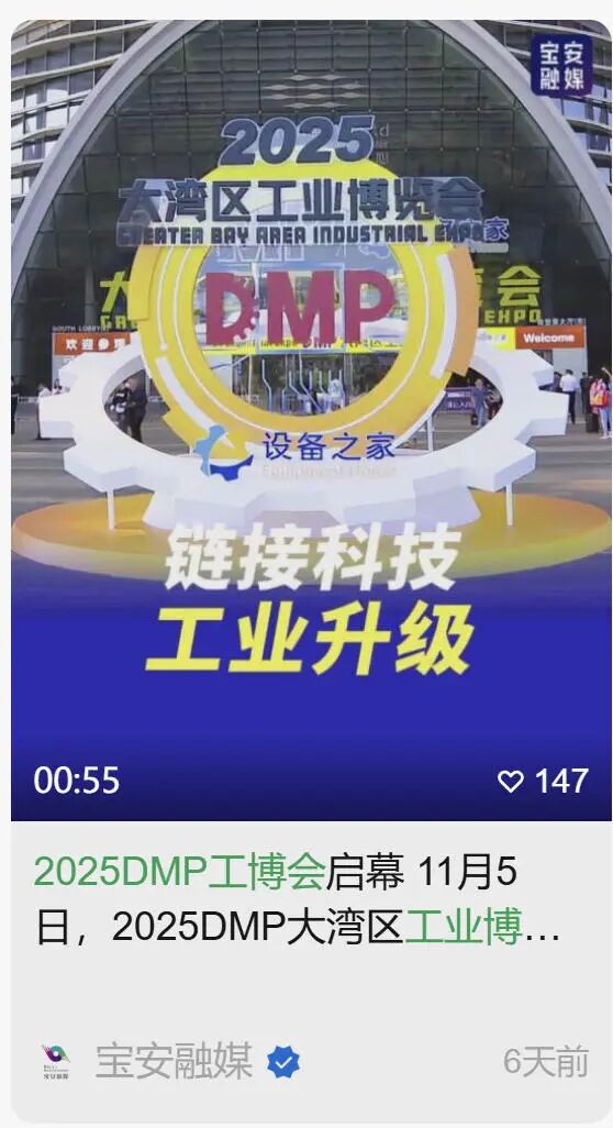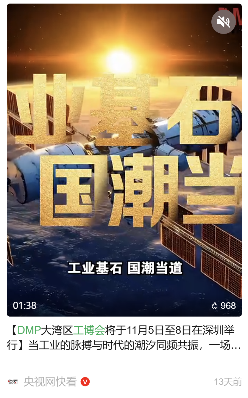 “以技术和创新为主导,集技术交流、供需对接、成果转化于一体,已经成为大湾区乃至全国先进制造业技术创新的重要风向标,这就是DMP工博会”——央视网 记者 徐静