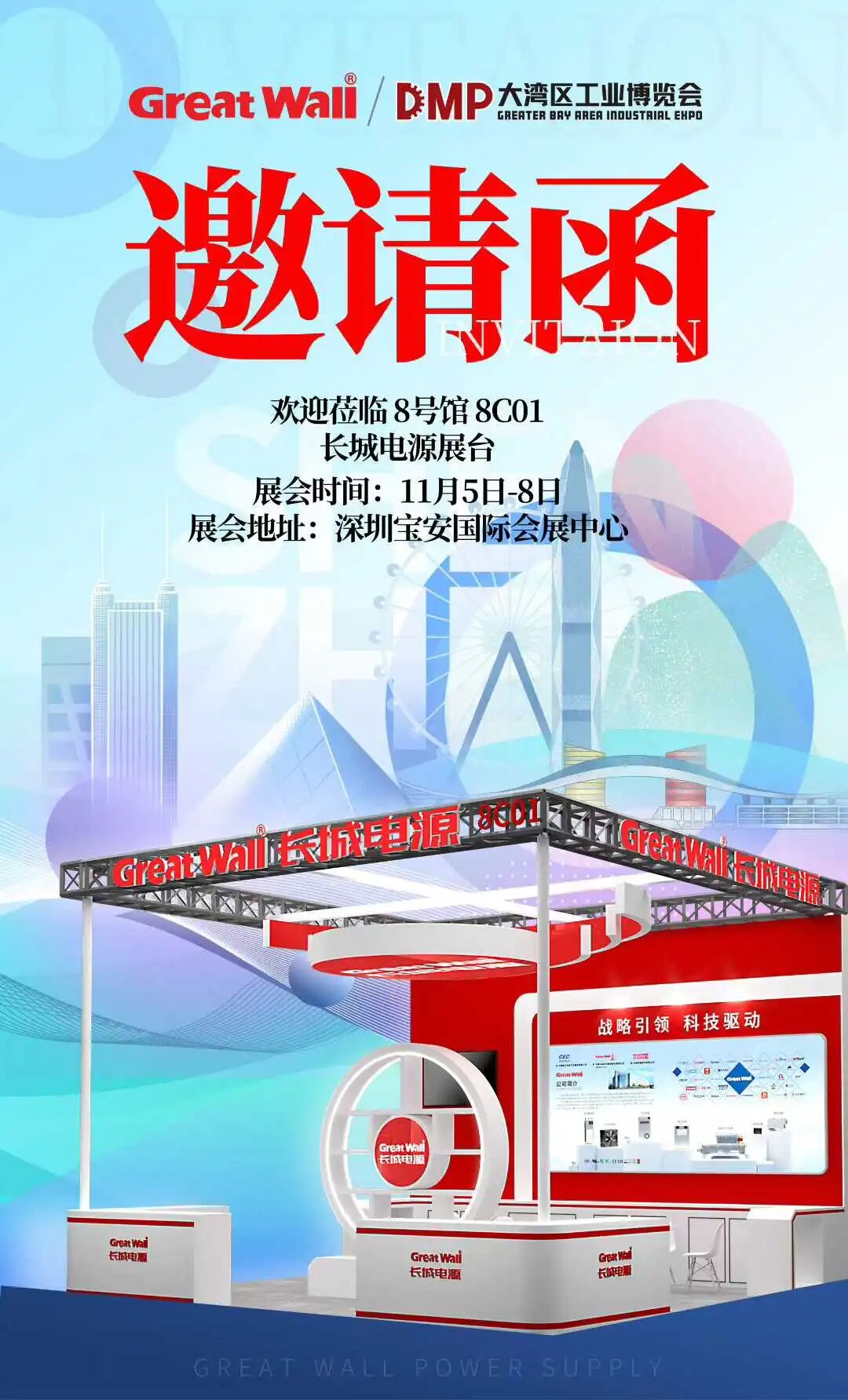 DMP大湾区工博会将于11月5日至8日在深圳举行,展会期间诚邀您相聚长城电源展台,共同探索工业数字化升级新路径,携手推动电源产业高质量发展新征程!