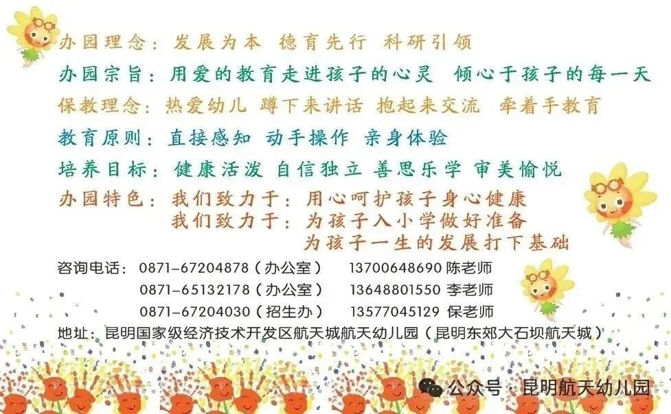 2.早晚温差大,请给孩子加衣服防着凉(做到脱一件薄衣,就要穿一件稍厚一点的衣服);