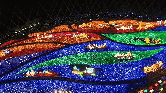 本次灯会位于南沙湾连片的景区里占地870亩,主游线路超3公里涵盖蒲洲花园、南沙天后宫景区和滨海公园等3个旅游景区灯会作品聚合大湾区11个城市的元素由1000多名非遗工匠精心打造是目前国内占地面积最大、灯组最多、展期最长、参与城市最多的灯会