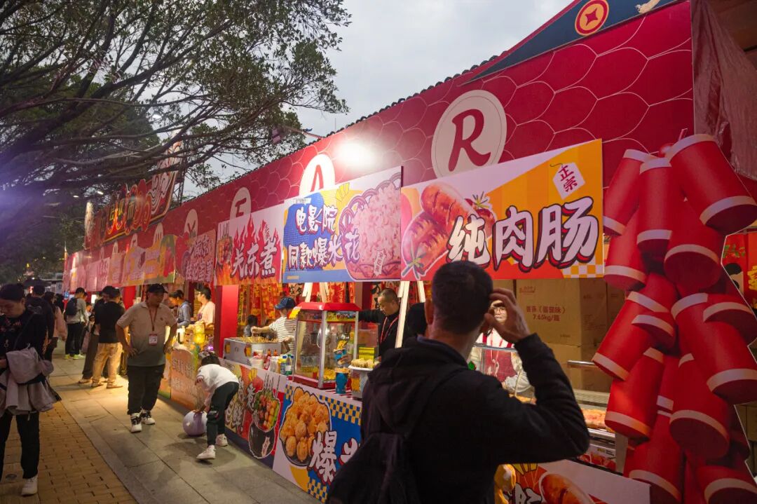 这次灯会特设了多个美食区,主要沿海边分布,包括财神美食区、寻味顺德美食区、品牌老字号区和丝路集市美食区。大部分以小吃、饮品为主,有最常见的烤鱿鱼、炸鸡翅、柠檬茶、茅根竹蔗水、大年糕等。