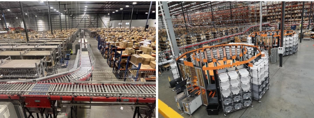 万邑通不仅在业务拓展上成绩斐然,更是海外仓智能化的先锋探索者。其美国仓全球首个双深位吸盘料箱机器人智能仓,通过引入大量先进物流装备与技术,实现了入库上架、拣选与存储全流程的智能化、无人化作业,为仓库增效、人员助力、卖家赋能,引领了整个跨境电商行业的智能化转型升级。