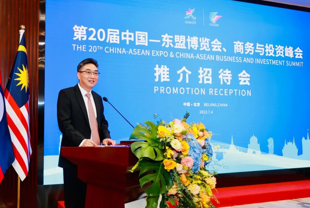 2023年7月4日,第20届中国—东盟博览会、中国—东盟商务与投资峰会推介招待会在北京中国—东盟中心举办。外交部部长助理农融、广西壮族自治区副主席眭国华、中国—东盟中心秘书长史忠俊、老挝驻华大使坎葆·恩塔万出席并致辞,越南驻华大使范星梅、新加坡驻华大使陈海泉及东盟10国驻华使馆官员出席活动。各方表示将通力合作,共同将盛会办成功、办精彩、办圆满,持续深化全方位合作,夯实推进区域经济一体化的务实平台,实现更高水平互利互惠,迎来“镶钻成冠”的新未来。