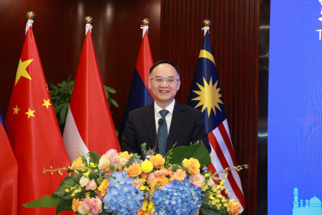 眭国华副主席表示,今年是“一带一路”倡议提出10周年,也是东博会、中国—东盟商务与投资峰会创办20周年。今年东博会、峰会以“和合共生建家园,命运与共向未来—推动‘一带一路’高质量发展和打造经济增长中心”为主题,将于9月16至19日在广西南宁市举办。广西愿以此为契机,与东盟各国一道,持续深化全方位合作,利用国际陆海贸易新通道建设的新机遇,携手开拓自由贸易大市场,实现更高水平互利互惠。▲中国—东盟中心秘书长史忠俊致辞。