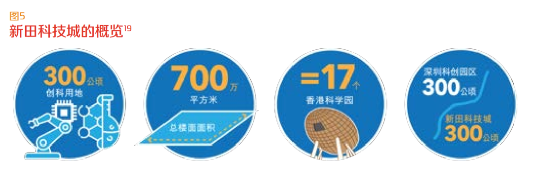 新田科技城的港深创新及科技园,占地面积87公顷,其土地面积是现有香港科技园的4倍之大,预计将成为香港历来极大规模的创科平台。港深创新及科技园是促进粤港澳大湾区(大湾区)创科发展的关键基地,以吸引来自香港、中国内地和世界各地的顶尖企业、研究机构和高等院校。