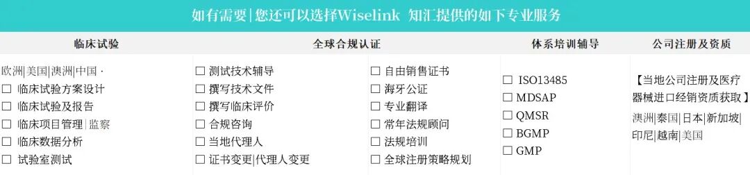 Wiselink拥有包括原澳大利亚药品监督管理局局长Dr.Derrick Beech为首席顾问的国际专业团队,秉承源于澳洲、扎根中国、服务世界的精神,信守专业、真诚、开放的核心价值观,致力于为医疗器械、化妆品、食品、保健品和中药制造商提供全球合规认证和临床试验服务。