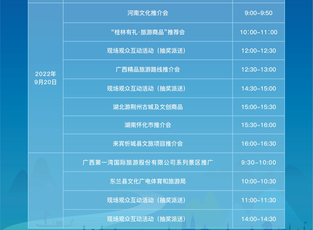 旅游展发挥平台和辐射作用,展会期间将同期举办推进旅游业复苏合作展望论坛、中国—东盟博览会旅游展圆桌研讨会、一对一买卖家专业洽谈会、首届全国气象文旅产业融合发展研讨会、2022全国文化遗产旅游主题论坛、文旅助力乡村振兴发展研讨会、地学旅游分展区论坛等十余项丰富多彩的配套活动,丰富旅游展的展会内涵,进一步提升展会的影响力。