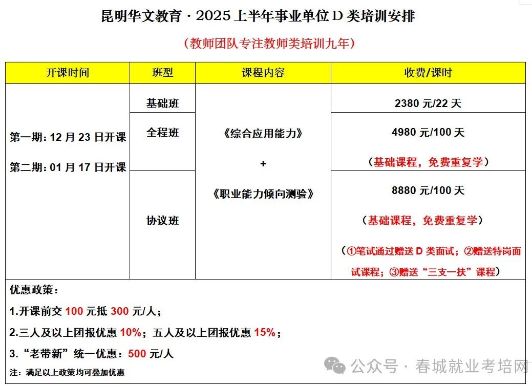 昆明华文教育·2025上半年事业单位D类1班课程表