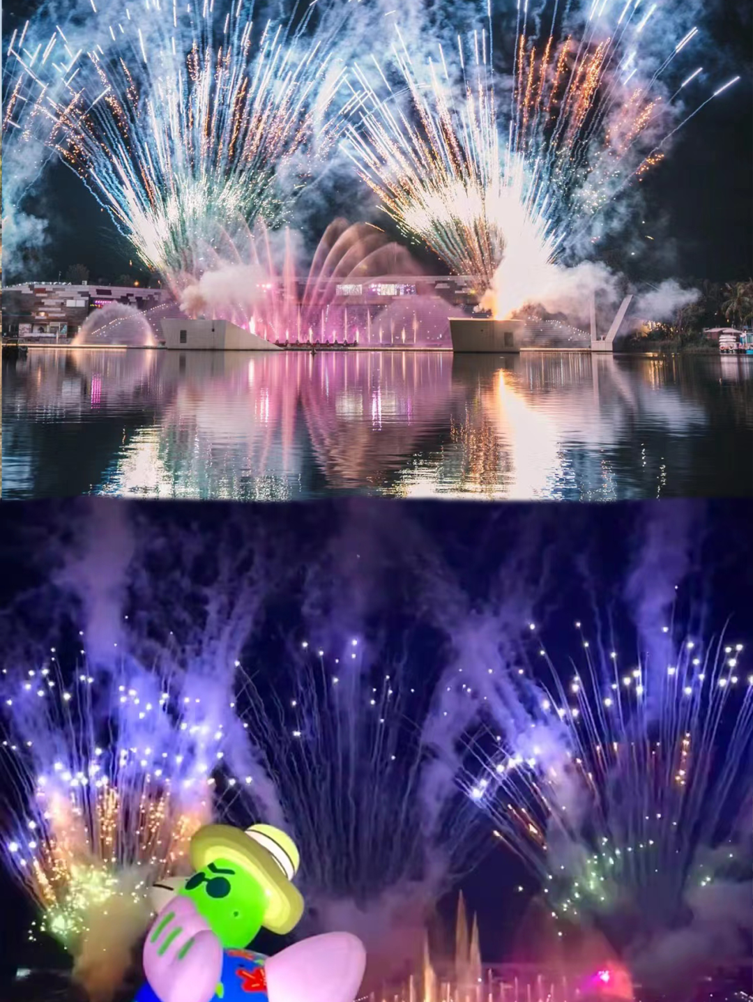 欢乐海岸的水幕电影和喷泉打造出如梦似花的浪漫画面,一场浪漫的烟花秀,开启幸运的2024。在露天的水秀剧场,观看一场如梦如幻的演出,巨型投影通过数控升降系统在海平面上冉冉升起,再变幻成喷泉与烟花共舞的场景。烟花的绚烂和喷泉的柔美交相辉映,气势恢宏,在夜色中分外好看。