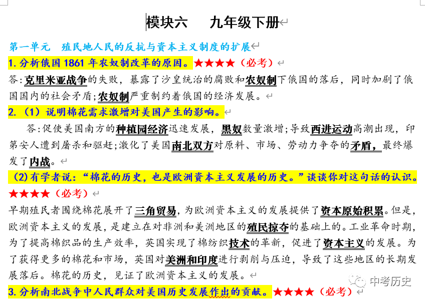 2024-2025学年八年级上册历史冲刺背诵秘籍(含填空版)