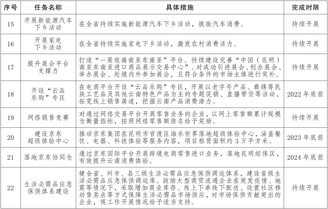 云南省促消费稳增长三年行动计划(2022—2024年)重点任务清单
