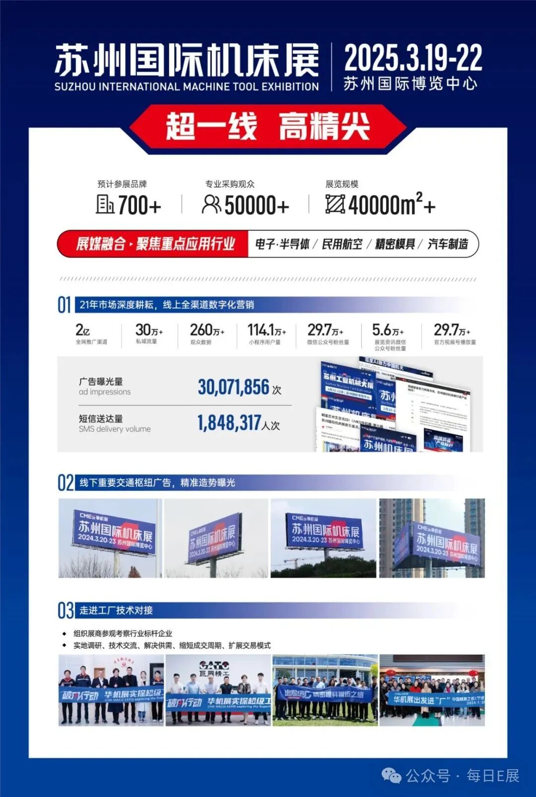 2025年第七届苏州国际机床展,聚焦电子半导体、民用航空、精密模具、汽车制造四大应用,700+先进机床品牌,全方位多维度展示金切机床、机床附件、成形机床、工业自动化及机器人、工量刃具领域的创新产品及解决方案!