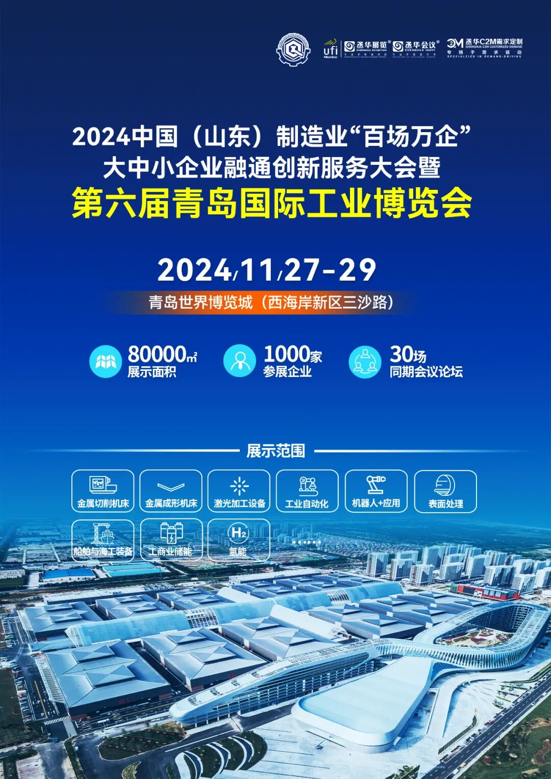 2024第六届青岛国际工业博览会(简称:青岛工博会)已调整于11月27-29日在青岛西海岸新区青岛世界博览城举办,由中国机械工业联合会、山东省机械工业科学技术协会、济南市机器人与高端装备产业协会、新丞华国际会展(山东)集团有限公司共同主办。全面展示金属切削、激光装备、工业自动化、机器人、金属成形、表面处理、船舶与海工、工业互联网、氢能、工商业储能等高端技术装备,聚焦高端装备,展示创新、绿色、智能的新成果,促进实体产业与互联网、大数据、人工智能深度融合。