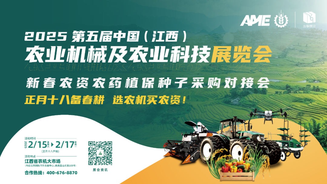 2025开年首展:中国(江西)农业机械及农业科技展览会 | 02/15-02/17 | 江西国际汽车会展中心 |