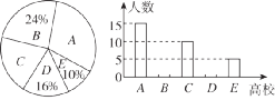 9.[新情境 社会热点]第8届中国——南亚博览会暨第28届中国昆明进出口商品交易会于2024年7月在昆明举办.本届南博会一共招募了800名志愿者,其中有一部分志愿者是在A,B,C,D,E五所高校中招募的.将招募结果绘制成如图的统计图.则在扇形统计图中,高校A所在扇形的圆心角度数为 ( )