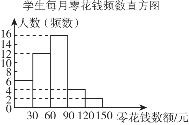 (3)若将被调查学生的零花钱数额绘制成扇形统计图,求零花钱数额为“60≤x<90”所在扇形的圆心角度数.