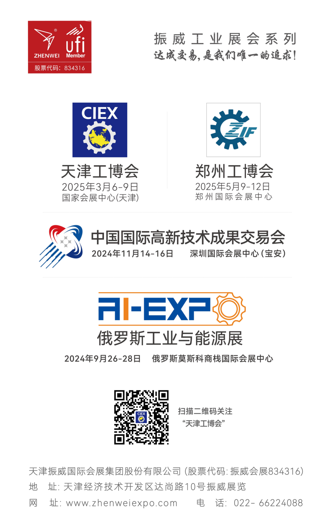 ![]() 扫码添加 了解更多讯息 | 天津振威国际会展集团股份有限公司 股票代码:振威会展 834316316 | |||