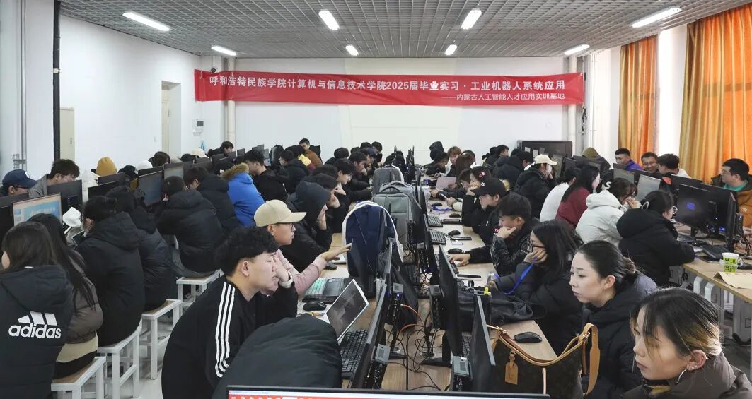 “我对工业机器人技术非常感兴趣,但是一直没能系统化地学习这方面的专业知识和技能,如今在学校就能学到专业的课程,真不错!”2024年11月25日,在上完工业机器人系统应用实训课程后,一位学生激动地说。当日,我院2025届毕业实习——《工业机器人系统应用实习实训》正式开课,来自3个专业的100多名学生参加实习实训,此次实习实训由内蒙古人工智能人才应用实训基地提供技术指导,旨在贯彻落实国家发展新一代人工智能的决策部署和自治区党委、政府关于促进人工智能产业发展的工作要求。