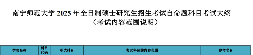 全国统考和联考科目的命题工作由教育部考试中心统一组织。统考科目考试大纲由教育部考试中心统一编制;联考科目考试大纲由教育部考试中心或教育部指定相关机构组织编制。我校初试科目中的自命题科目考试大纲详见《南宁师范大学2025年全日制硕士研究生招生考试科目考试大纲(含参考书目)》(附件2)。