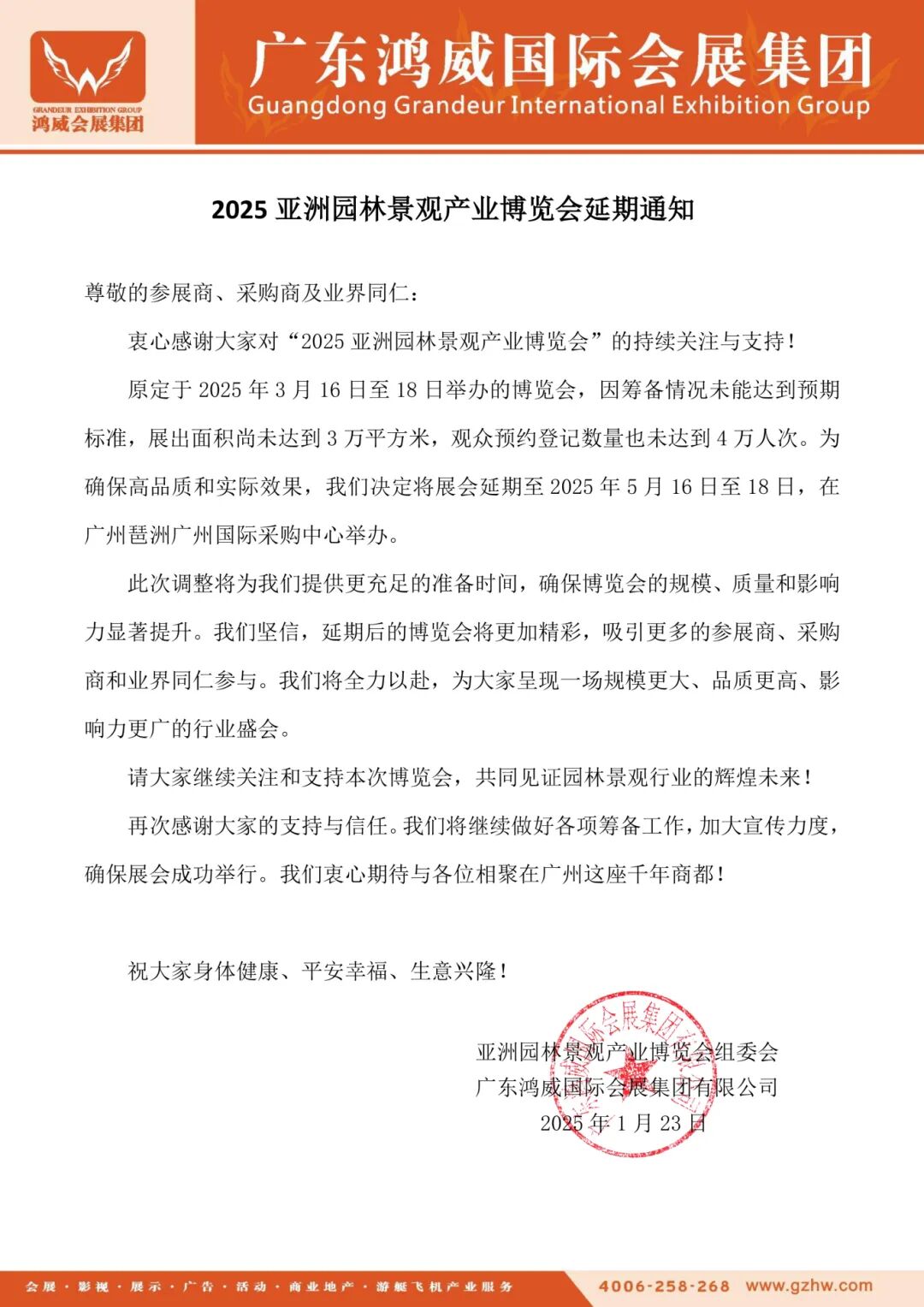 衷心感谢大家对“2025亚洲园林景观产业博览会”的持续关注与支持!