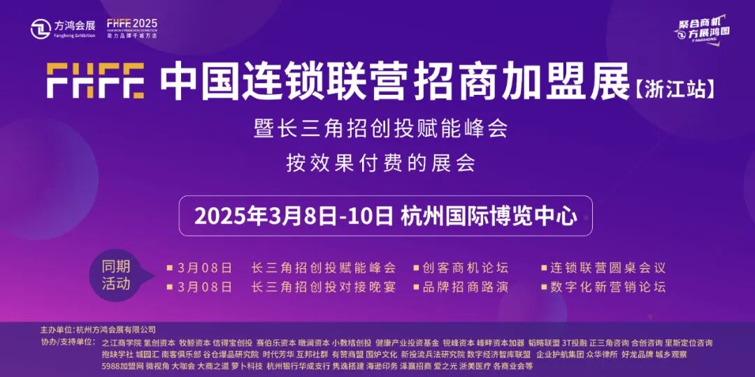 2025年3月8-10日,FHFE中国连锁联营加盟展览会(浙江站)在@杭州国际博览中心盛大开幕!