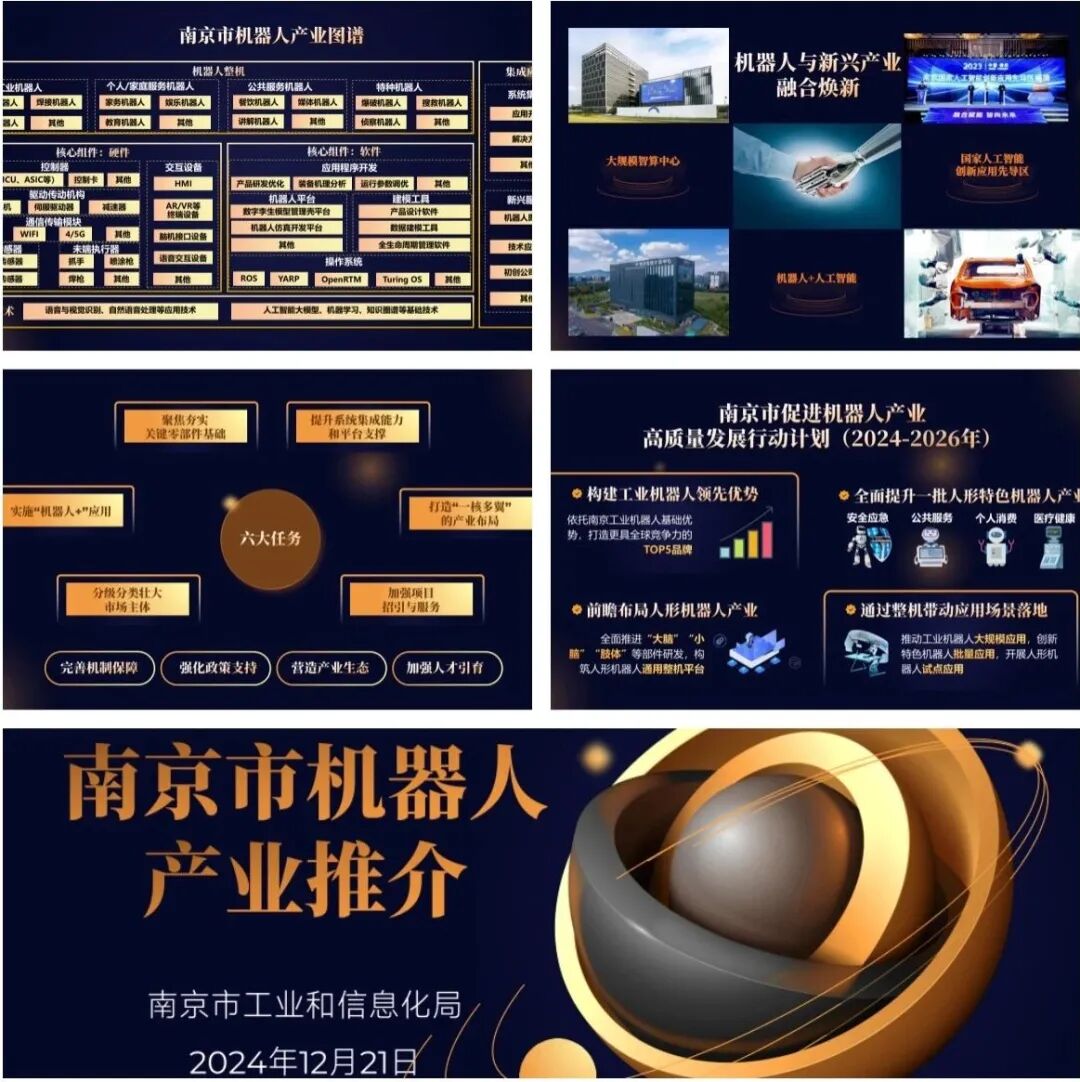 今年11月份,南京进一步抢抓机器人产业发展新机遇,研究出台了《南京市促进机器人产业高质量发展行动计划(2024—2026年)》,从机制、政策、人才、生态等多个维度为全市机器人产业发展赋能,诚挚欢迎产学研政各界人士共同谋划南京机器人产业新未来。