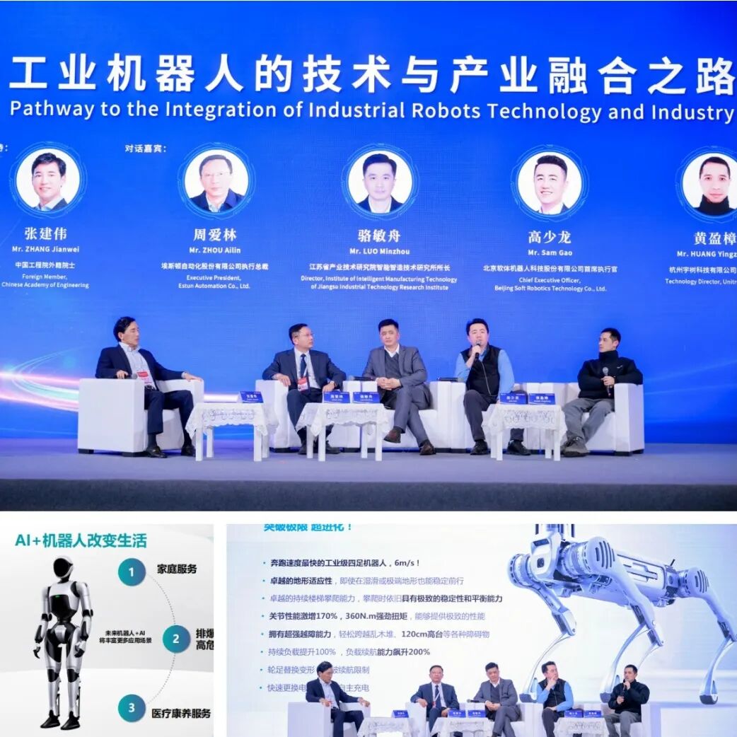 本次大会的圆桌论坛环节由中国工程院外籍院士张建伟主持,邀请到了埃斯顿自动化股份有限公司执行总裁周爱林,江苏集萃智能制造技术研究所董事长骆敏舟,北京软体机器人科技股份有限公司首席执行官高少龙,宇树科技联合技术总监黄盈樟作为讨论嘉宾。
