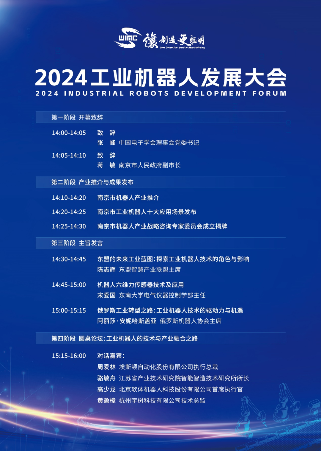 2024工业机器人发展大会于12月21日下午在江苏南京成功举办。中国电子学会理事会党委书记张峰,南京市副市长蒋敏、市政府副秘书长郑晓明、市工信局相关负责同志以及国内外行业专家共150余人出席大会。本次大会,重点围绕全球机器人研究前沿和应用重点领域,开展高水平的学术交流和最新成果展示,旨在搭建国际协同的创新平台,进一步推动机器人技术创新和产业创新深度融合,助力构建开放共享的全球机器人创新生态。