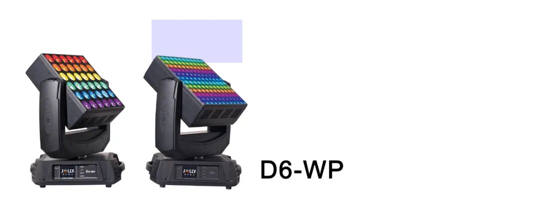 D6-WP:一面为36颗*15W RGBW LED灯珠,一面为144颗*0.2W RGB LED像素. 鸿彩灯光JOLLY D6-WP打破以往传统产品设计模式,全新的打造双面无极变脸摇头灯,一款基于FPGA软件平台开发的视频像素技术与摇头染色融合的创新灯具。