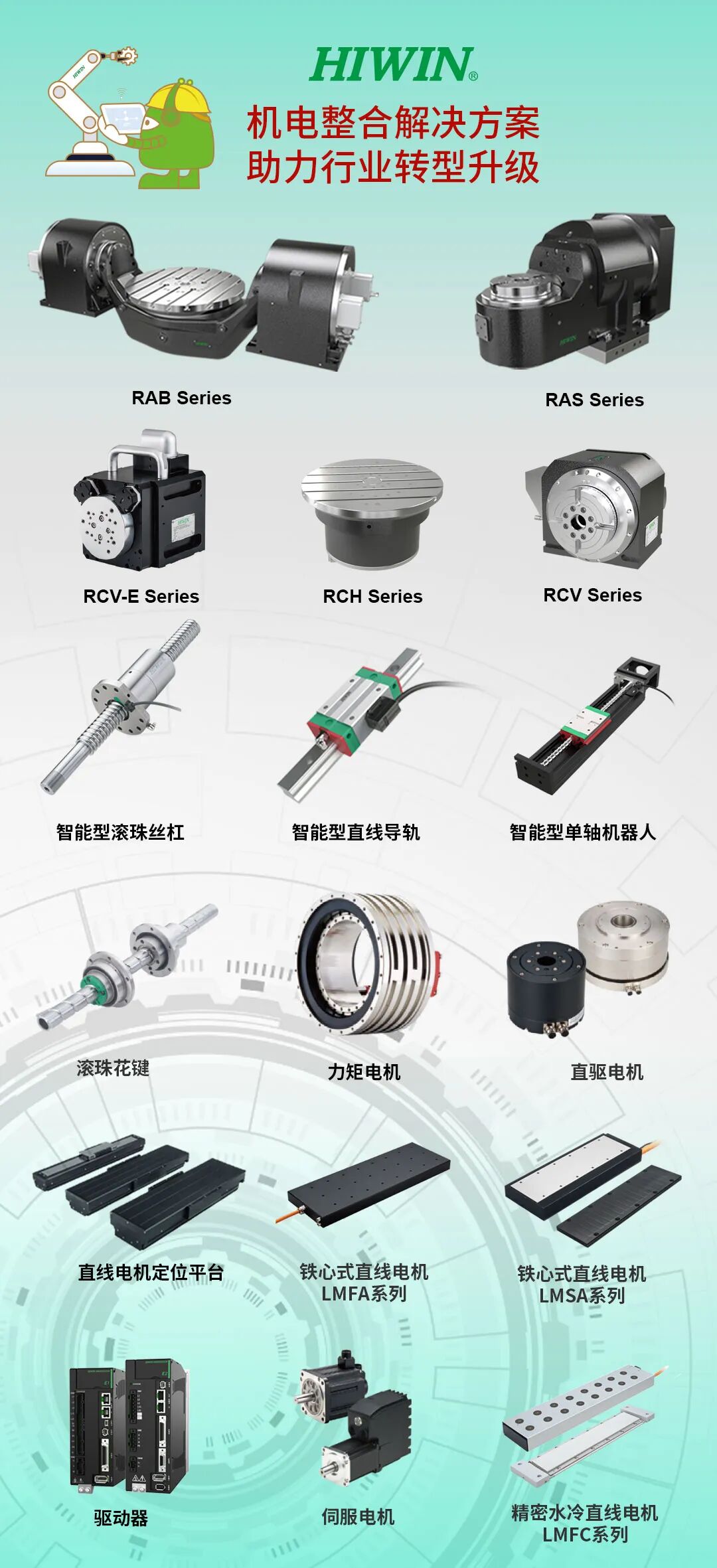 HIWIN掌握机电产品整合能力,从售前协助客户开发阶段之需求评估、规格选型、应用技术交流、产品性能品质确保,到售后提供即时而专业的服务。