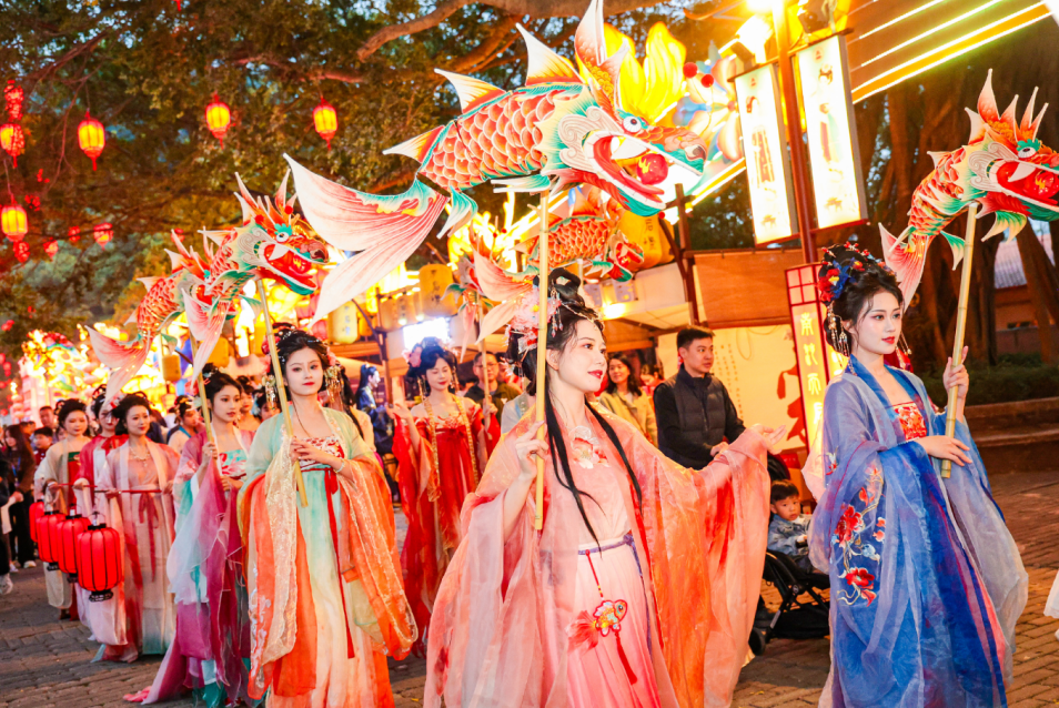 灯会持续到3月30日,千场特色演艺活动和互动潮玩精彩叠加。游4A级景区、看精彩演出、品特色美食、购精品年货,全方位消费场景、最暖心游玩体验尽在灯会。